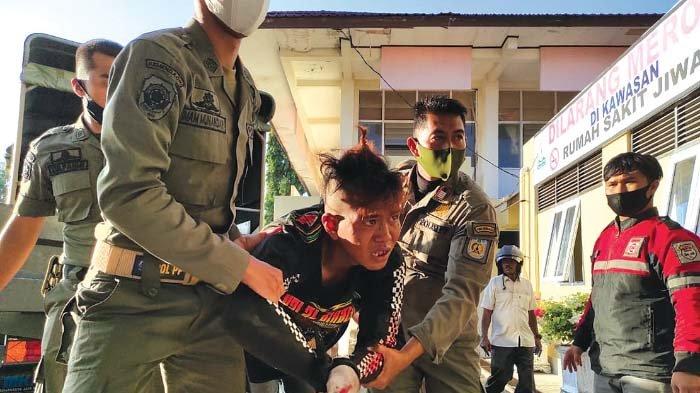 Petugas Satpol PP dan WH Kota Banda Aceh diserang oleh seorang pemuda diduga alami gangguan jiwa, Kamis (21/1/2021) sore