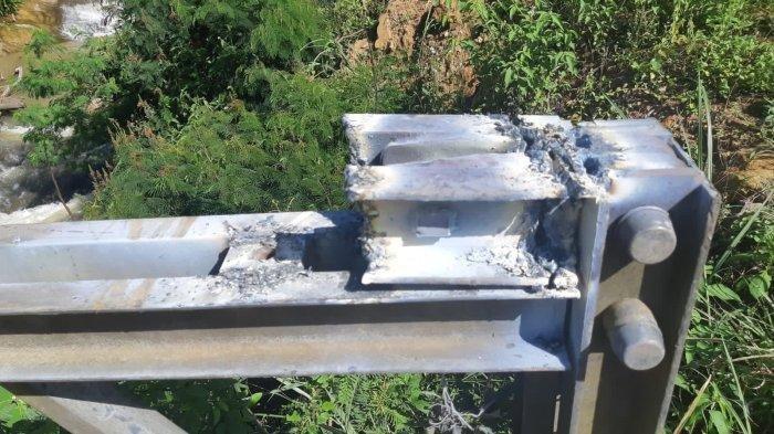 Polisi juga menemukan batang besi penahan jembatan dengan ukuran sekitar 6 meter dengan lebar 40 sentimeter berbentuk huruf L, yang sudah terbungkus karung beras.