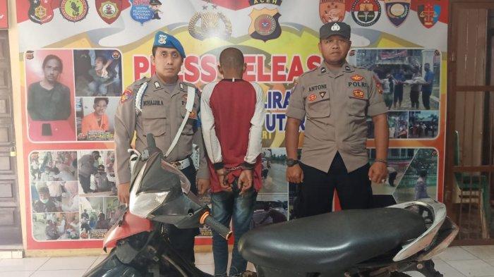 Tersangka diduga mencuri sepmor Supra X 125 tanpa nomor polisi pada 31 Oktober 2022 milik Sulaiman bin Manyak (51), warga Desa Keutapang ...