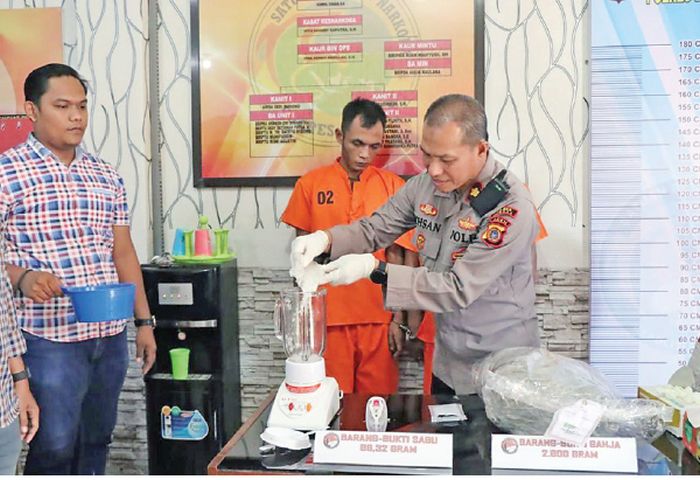 “Pemusnahan barang bukti kita lakukan dengan cara blender dicampurkan dengan air,” sebut Kompol Ichsan.