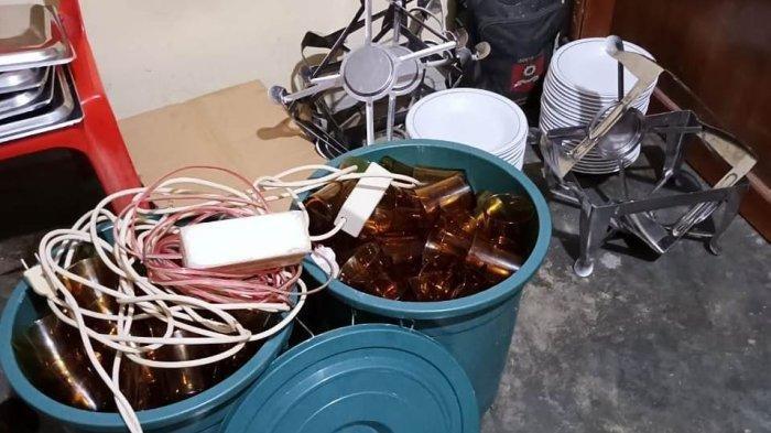 Dari penangkapan tersebut, pihak kepolisian mengamankan barang bukti berupa lima lusin gelas Duralex, enam unit perlengkapan prasmanan, lima lusin piring Indokeramik, satu unit kompor, dan dua ember warna hijau.