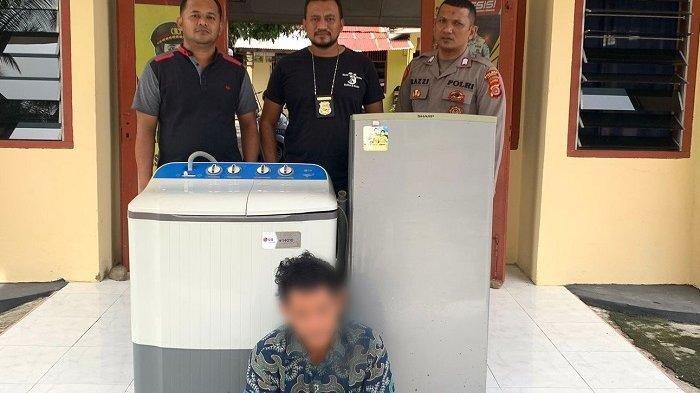 Ia berhasil membawa kabur barang berharga milik korban berupa satu kulkas dan satu mesin cuci,” sebutnya.