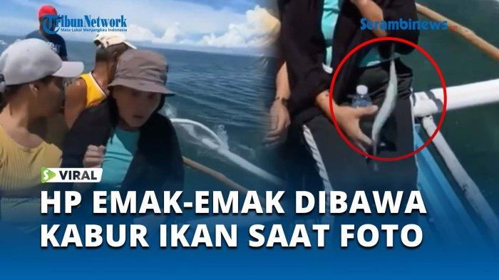 Sebuah video viral memperlihatkan seorang emak-emak syok saat handphone miliknya dibawa kabur oleh ikan ditengah laut.