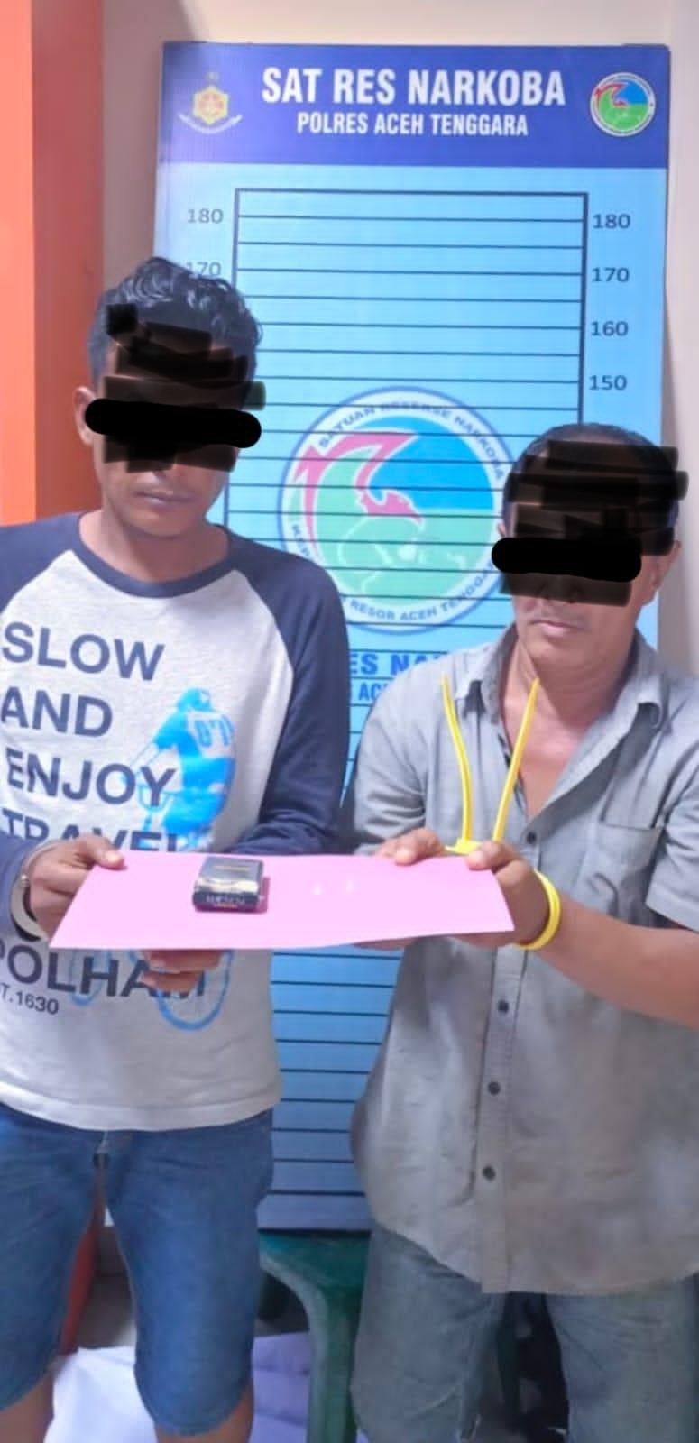 Dua warga Aceh Tenggara (Agara) yang kedapatan menyimpan sabu-sabu dalam kantong jaketnya ditangkap personel Sat Resnarkoba Polres Aceh Tenggara.