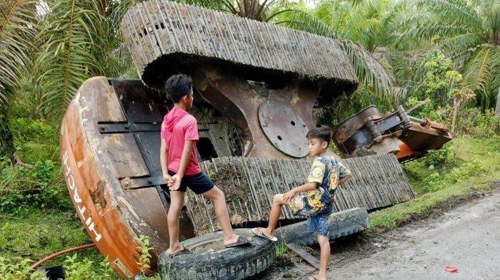 PROHABA.CO -- Alat berat jenis beko yang jatuh dari atas trado di kawasan Lugu Sebahak, Kecamatan Teluk Dalam, Kabupaten Simeulue, hingga kini belum dievakuasi dari lokasi.