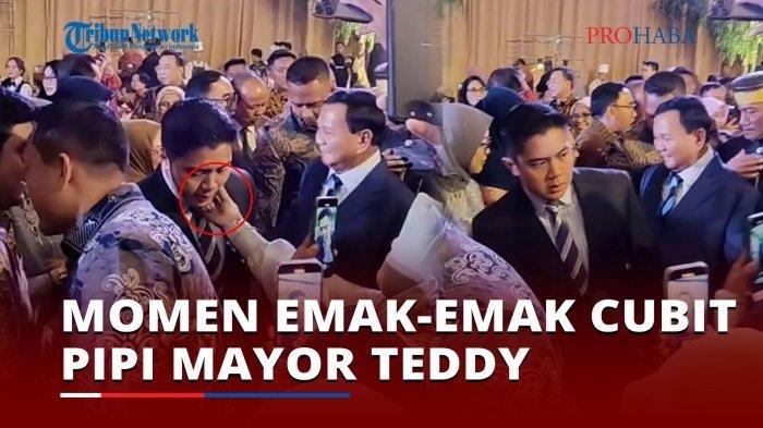Lantas, beredar video di media sosial yang memperlihatkan pipi Mayor Teddy tiba-tiba dicubit oleh emak-emak.