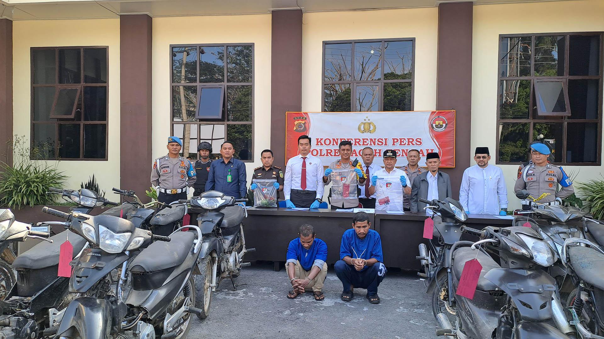 Personel Polres Aceh Tengah menangkap dua pelaku pencurian kendaraan bermotor (curanmor) dan mengamankan 12 sepeda motor (sepmor) hasil curian.