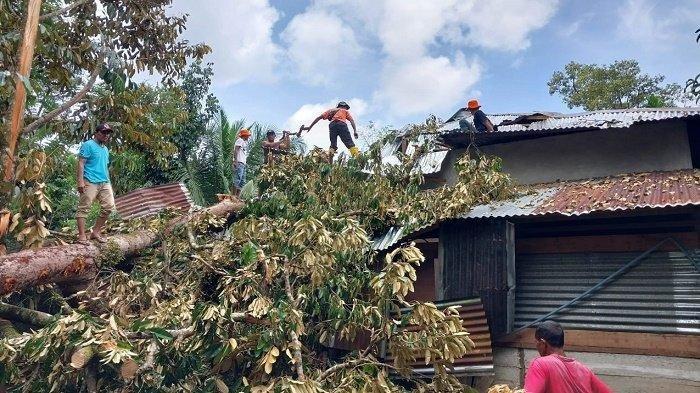 PROHABA.CO -- Dua rumah di Desa Peulekung, Kecamatan Seunagan Timur, Nagan Raya rusak tertimpa pohon karena dilanda angin kencang, Rabu (22/5/2024).