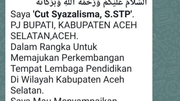 Hal ini disampaikan oleh Pj Bupati Aceh Selatan, Cut Syazalisma, SSTP melalui Kabag Protokol dan Komunikasi Pimpinan, Deka Harwinta Zianur, SH, MIKom,