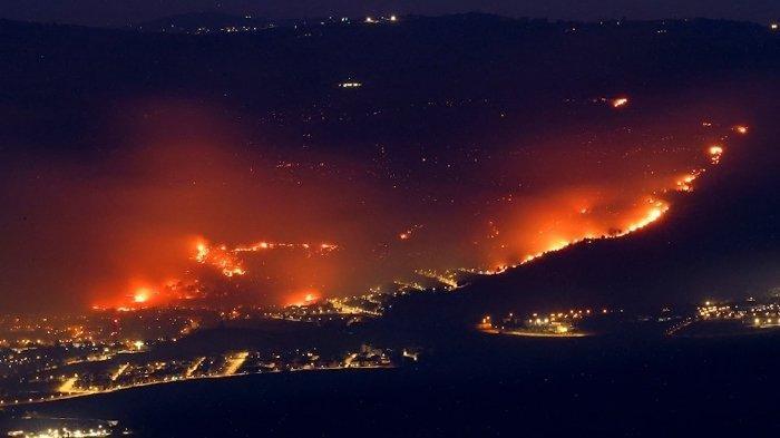 Wilayah utara Israel dilanda kebakaran hebat usai diserang serentetan roket hingga drone oleh kelompok milisi Lebanon, Hizbullah.