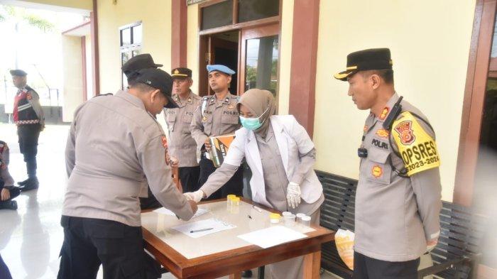 Puluhan personel Polres Bireuen usai mengukitu apel pagi pada Selasa (16/1/2024) dipanggil secara acak untuk dites urine.
